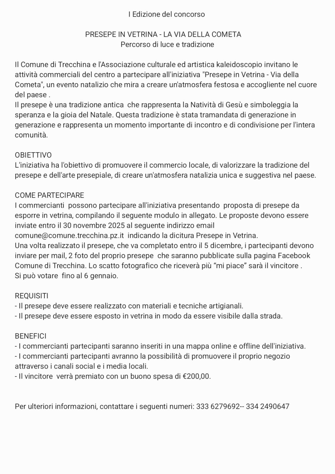 AVVISO – concorso “presepe in vetrina-la via della cometa”